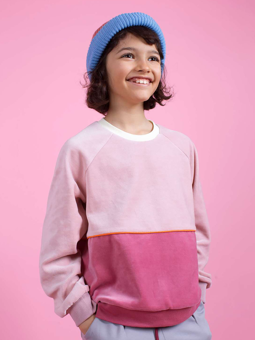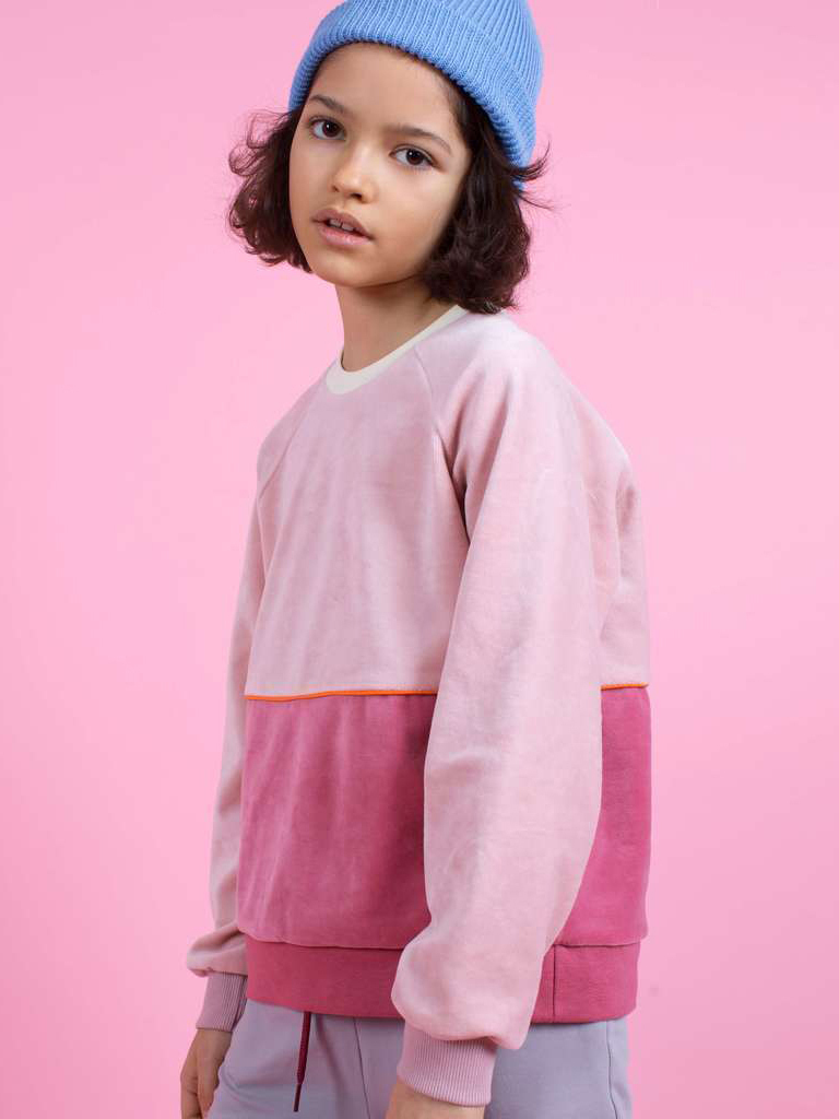 Свитшот из мягчайшего велюра двух оттенков c контрастным кантом. Наша отдельная гордость - ворот, который не деформируется от множества стирок.