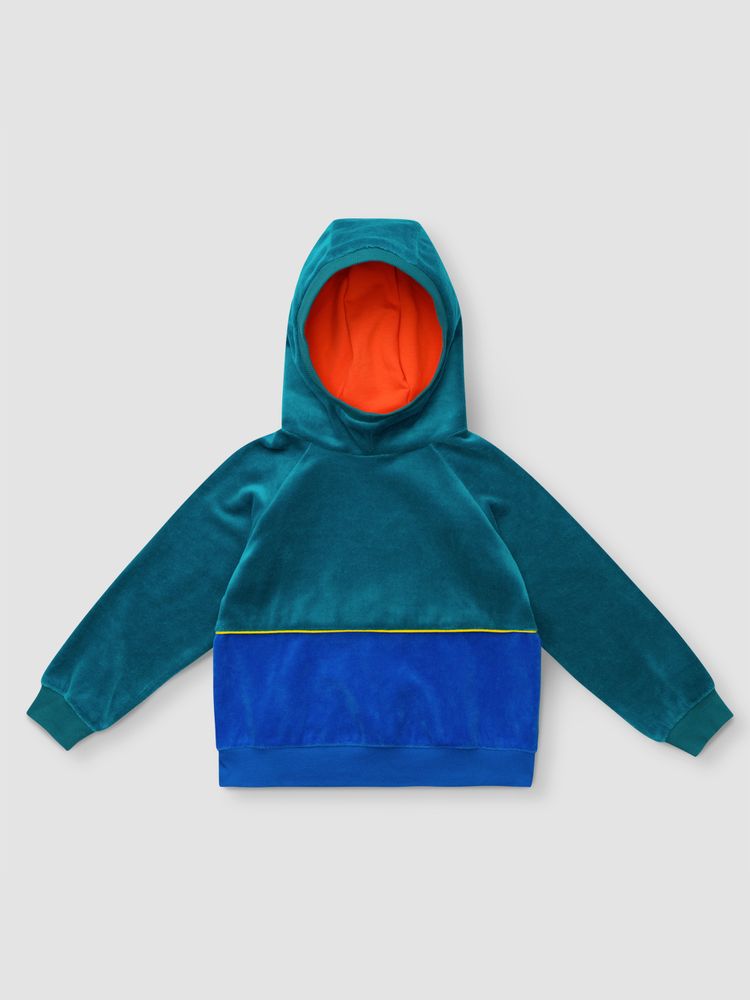 Толстовка с капюшоном из уютного велюра. Обратите внимание, у толстовки теплый и практичный капюшон с подкладом, который отлично облегает голову и в надетом виде заменяет шапку и шарф - закрывает уши и горло. Капюшон отделан резинкой для лучшего прилегания!