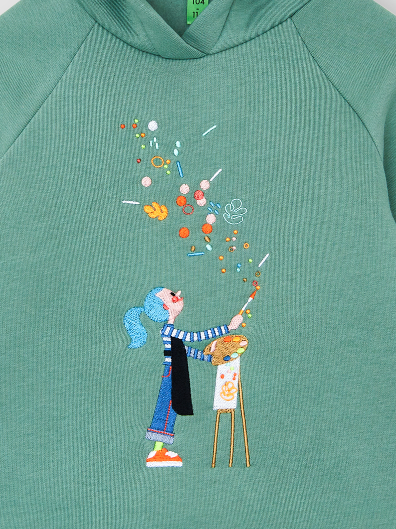 Толстовка с капюшоном с вышивкой. Выполнена из хлопка с начесом внутри.