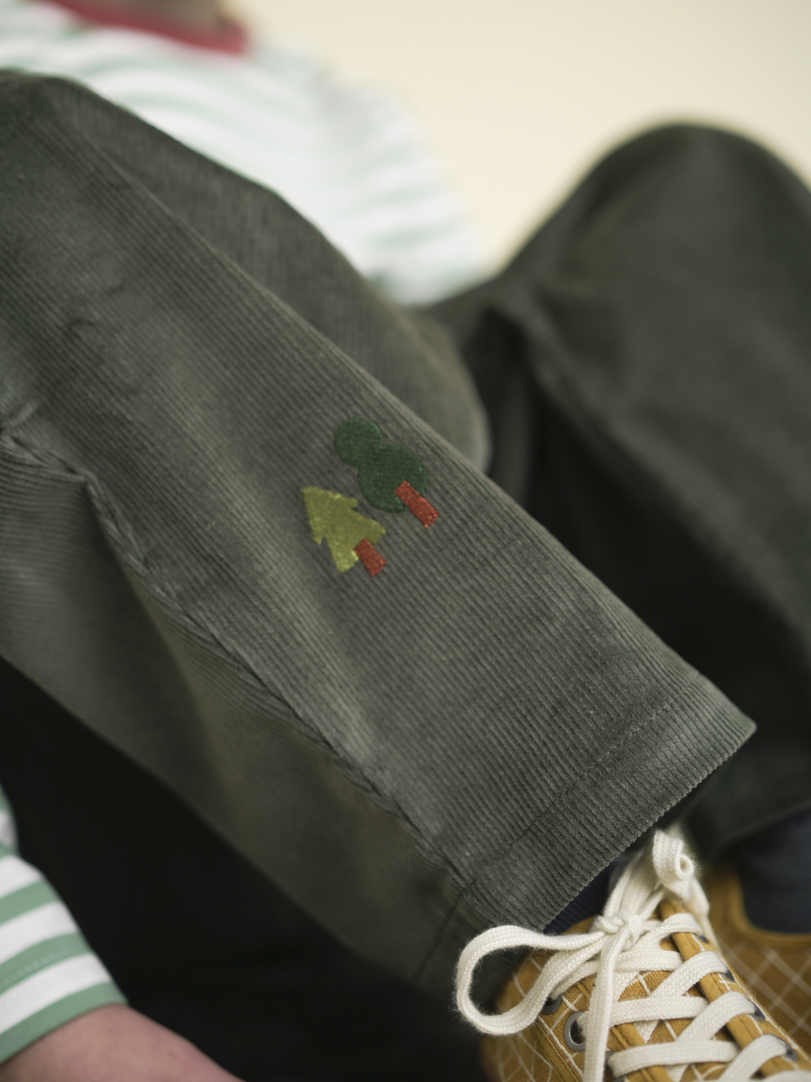 Штаны из мягкого микровельвета на резинке. На брюках - три вышивки.