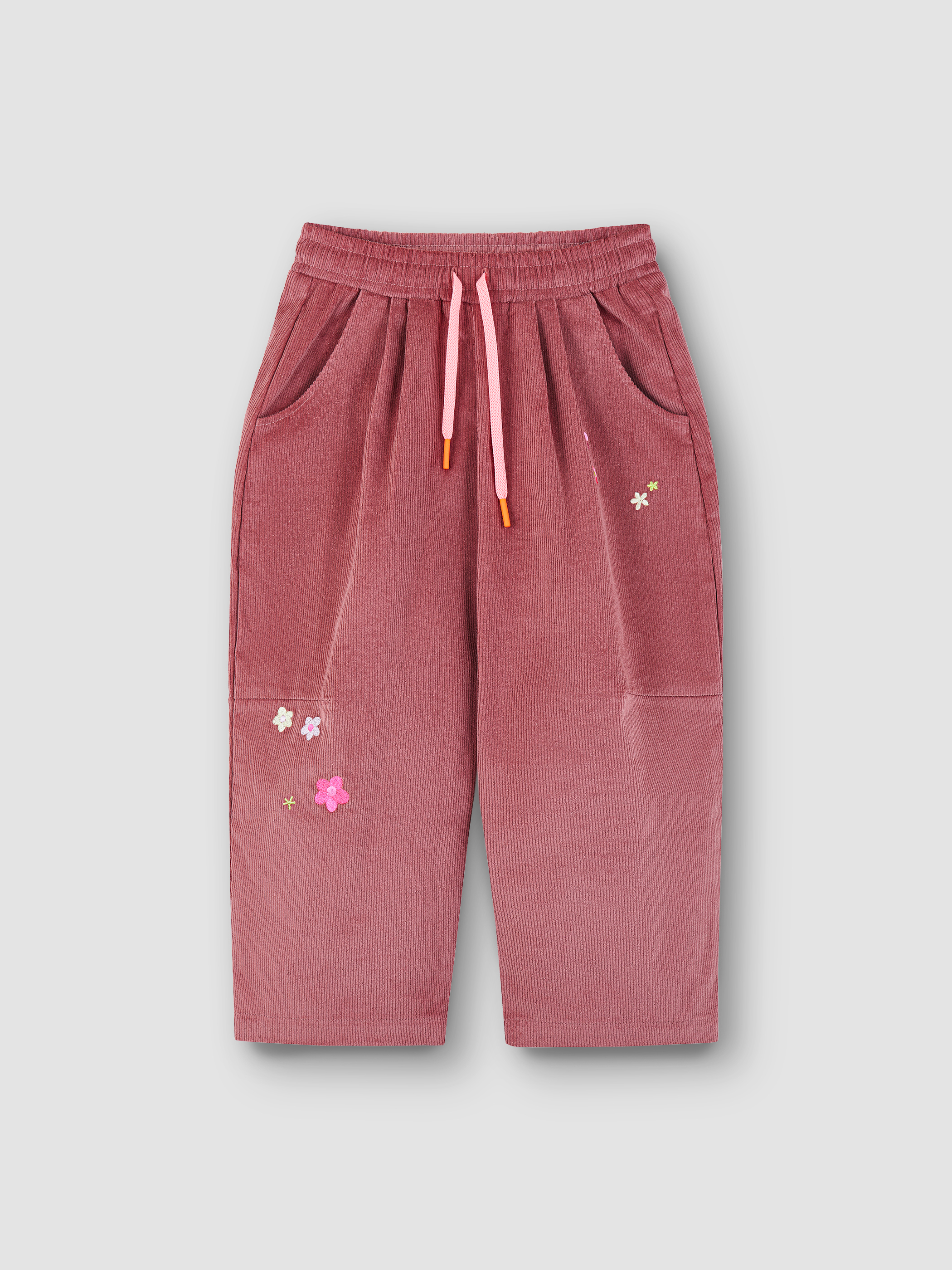 Штаны из мягкого микровельвета на резинке. На брюках - три вышивки.