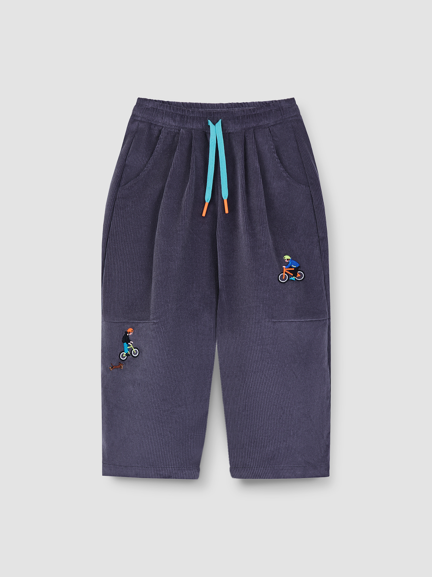 Штаны из мягкого микровельвета на резинке. На брюках - три вышивки.